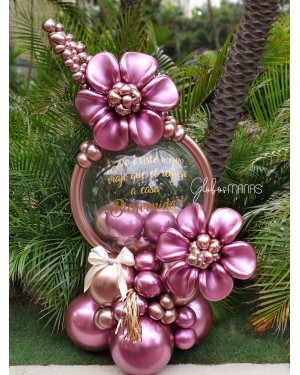 Hermoso diseño elaborado con globo Deco Bubble Qualatex Mide aprox. 1.50 Mt de alto.Incluye globo personalizado.Puede escoger los colores.Incluye flor hecha en la técnica de distorsión.Nota: los colores están sujetos a disponibilidad.Utilizamos globos de primera calidad como lo es la marca Qualatex...